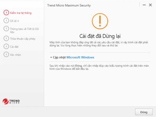 Trend Micro lỗi: “Cài đặt đã dừng lại – Cập nhập Microsoft Windows”