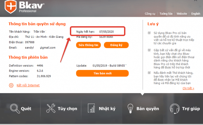 Hướng dẫn xem số ngày còn của Bkav Pro mới nhất