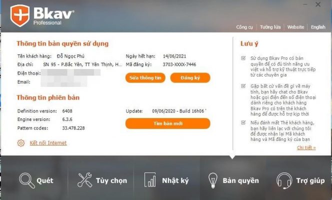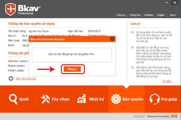 Hướng dẫn gia hạn Bkav Pro khi còn hạn sử dụng
