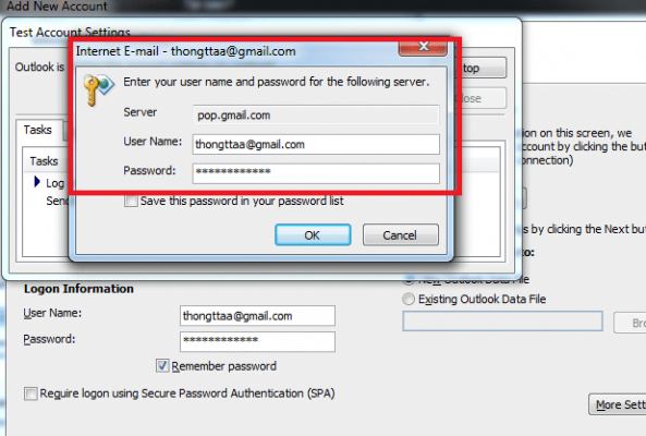 Huớng dẫn fix lỗi Cấu hình Gmail trong Outlook 2010