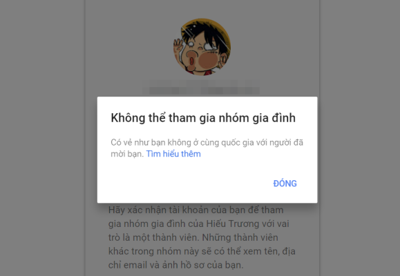 Youtube Premium: “Lỗi không cùng quốc gia khi tham gia nhóm gia đình”
