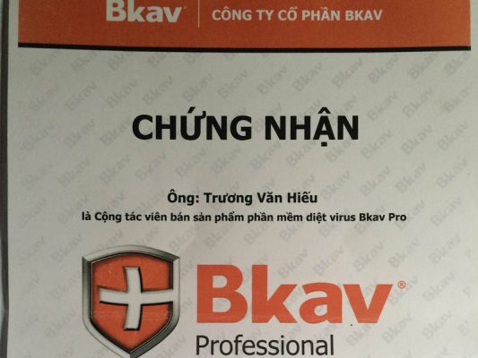 Giấy chứng nhận chính thức là Đại lý cung cấp thẻ Bkav Pro toàn quốc.